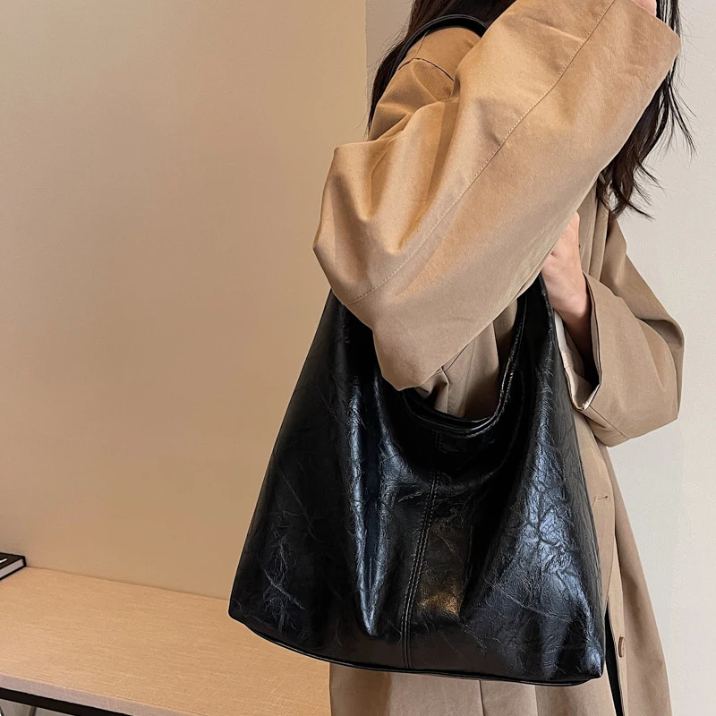 الخريف والشتاء حقيبة المرأة خمر سعة كبيرة حقيبة كتف من جلد الغزال بلون بسيط حقيبة ركاب عادية حقائب اليد الرجعية